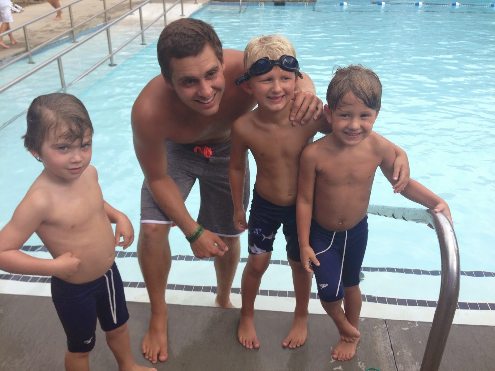 So, we got all the boys lined up an in their correct lane order (which takes a village) and had them all sitting in their chairs, about ready to swim when....