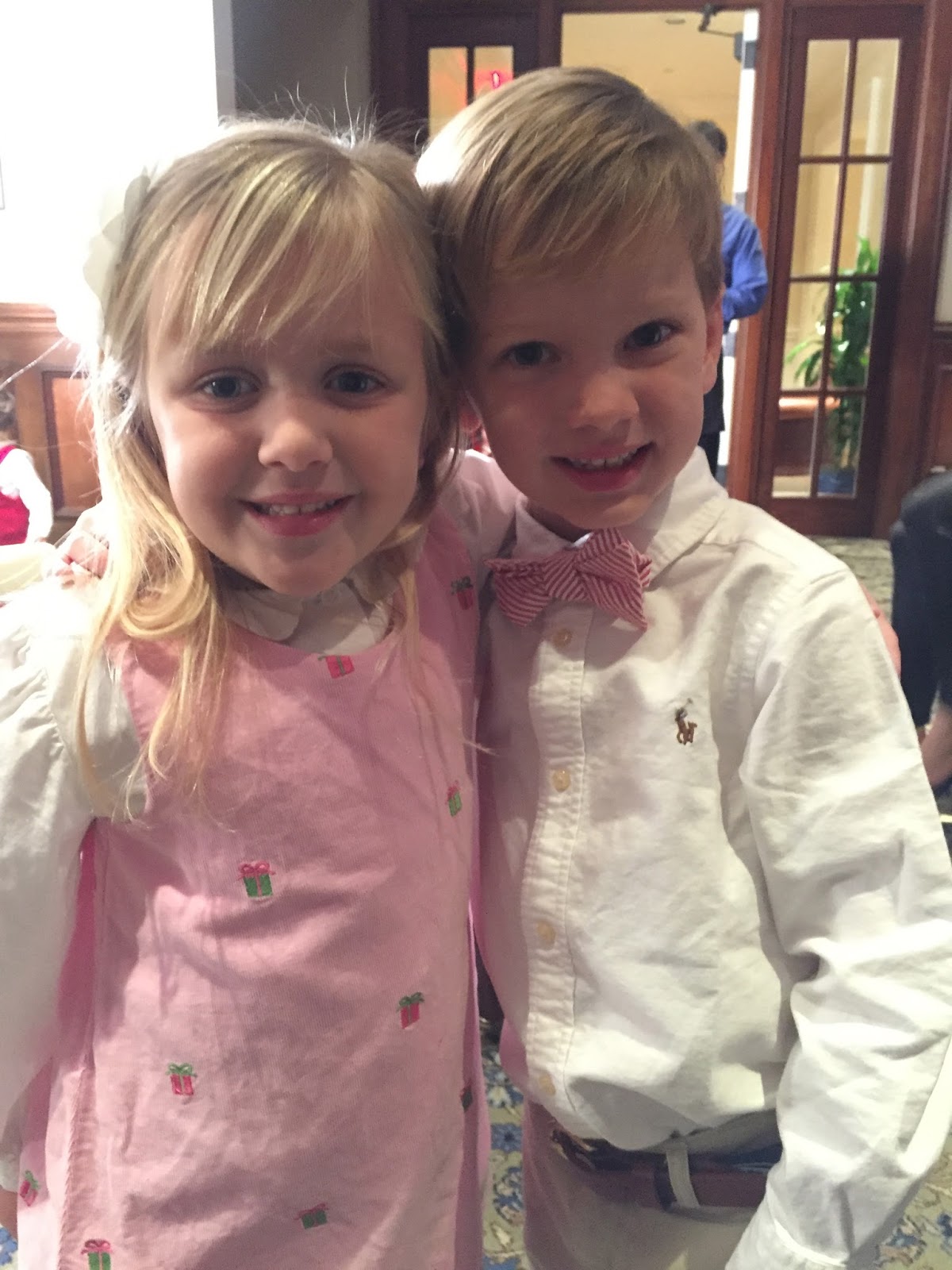 After talking to Santa, they ate and ran around looking for his sleigh.
