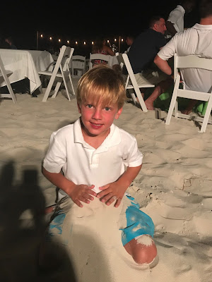We had dinner that night and I learned after the previous night of swimming in the ocean in clothes that I needed to let them wear suits to dinner (on beach again!).